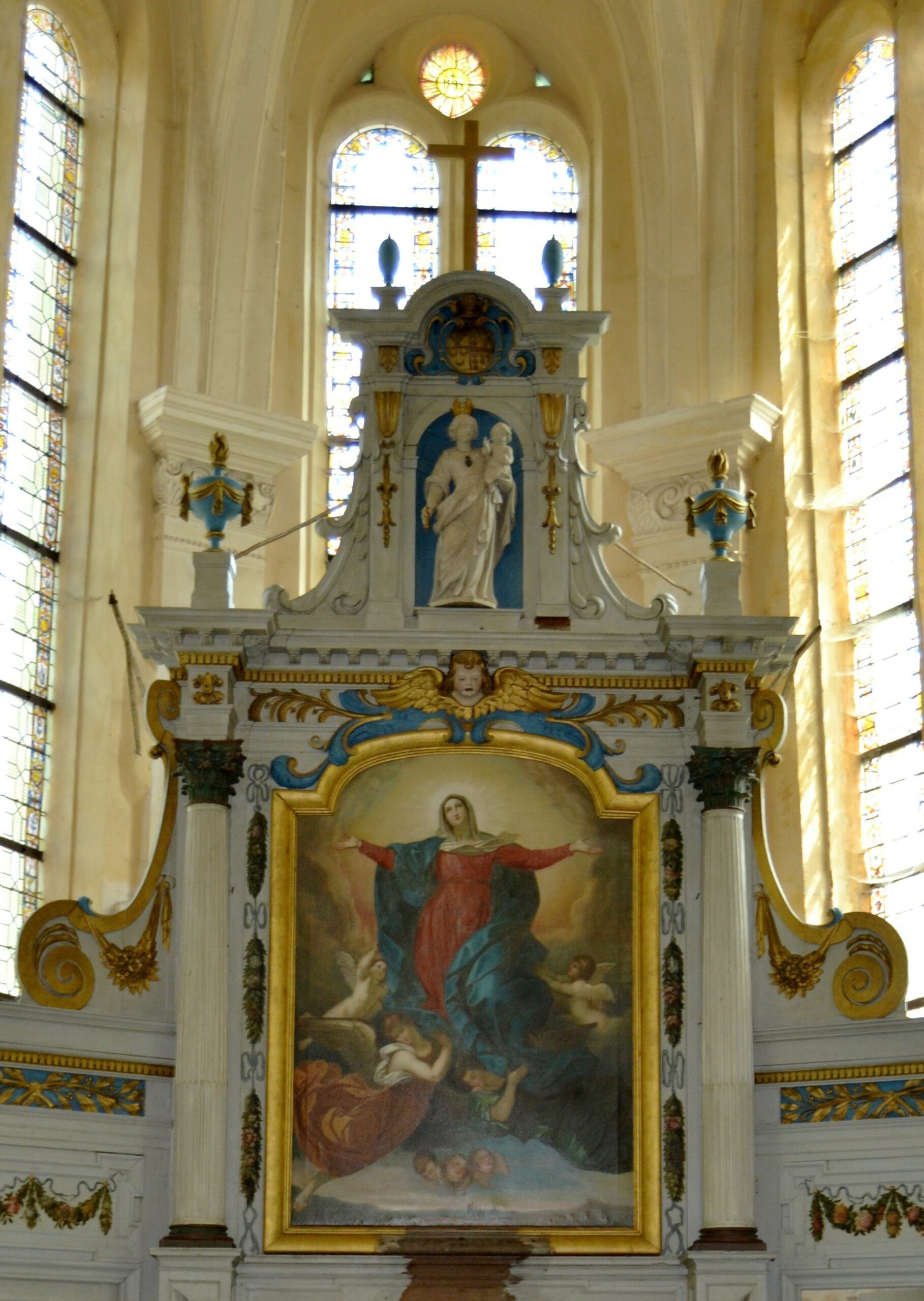 Construite à l’emplacement d’une chapelle du XIIe siècle, elle est édifiée vers la fin de la première moitié du XVIe siècle. Sous le patronage de la Sainte Vierge, elle est nommée Notre-Dame des Blancs-Manteaux dans les documents anciens. Elle est bâtie de belles pierres calcaire. Son architecture Renaissance est sobre et simple. Elle ressemble aux églises du Mesnil-Aubry, d’Attainville ou de Mareil-en-France dues, également, à l’architecte Nicolas de Saint-Michel, né à Luzarches vers 1520 et mort en 1590. Celui-ci est très influencé par les œuvres de Serlio et de Vitruve. L’édifice comporte deux collatéraux aux fenêtres éclairées par des grisailles. On aperçoit à la clé de voûte un écu chargé de six roses, et plus loin sur une travée du chœur : 1575, date à laquelle l’église fut restaurée après avoir souffert des guerres de Religion. À la suite de la bataille de Saint-Denis, les Huguenots, dans leur retraite, emportent moult objets religieux, profanent et incendient l’église. Le Roux, le vicaire, a consigné les faits dans le registre paroissial du mois de septembre 1567. Mais aussi les troupes royales, vivant sur le pays, avaient causé maints dégâts. Au-dessus du portail principal à l’extérieur, une plaque de marbre noir signale la fin des gros travaux en 1682. La décoration intérieure n’est d’ailleurs pas terminée : sur trois piliers proches du chœur, les tailloirs sont bruts et attendent encore le ciseau du tailleur de pierre.